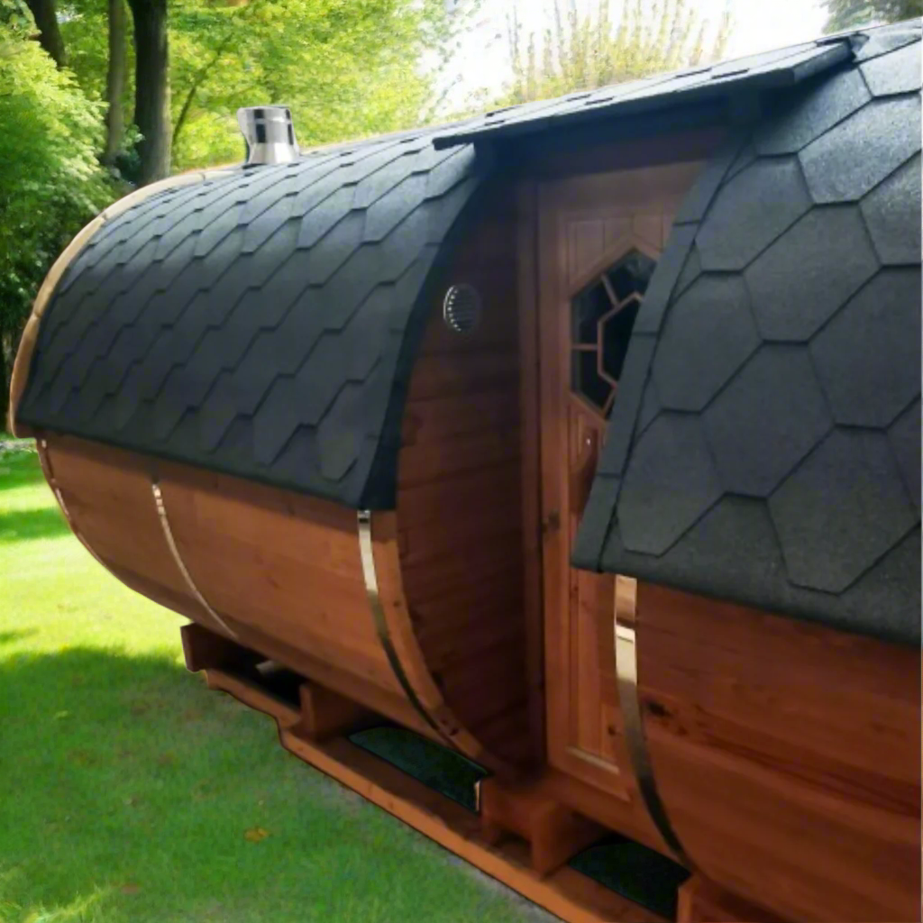 Step into pure relaxation with our 5.9M Thermo Wood Barrel Sauna with side entrance — where timeless design meets modern wellness ✨. Handcrafted from premium thermo wood, this beautifully rounded sauna boasts exceptional heat retention, moisture resistance, and a refined, natural finish. It’s more than a sauna — it’s a lifestyle statement for your outdoor sanctuary 🌳